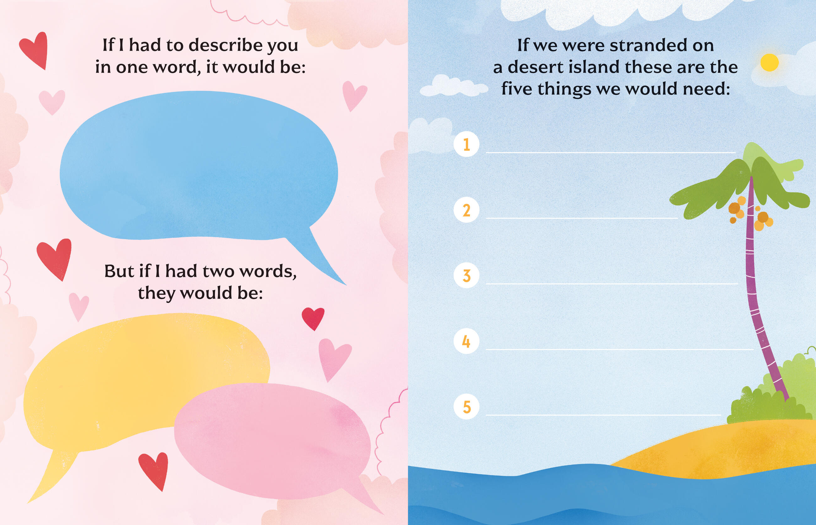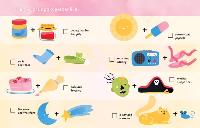Every page has a heartwarming, imaginative (and sometimes cheeky!) prompt—a sentence to finish or an illustration to complete—to help kids capture everything they know and love about their parent, from their favorite things to do together to what kind of pizza topping they would be. A sheet of illustrated stickers gives kids even more ways to customize the work!