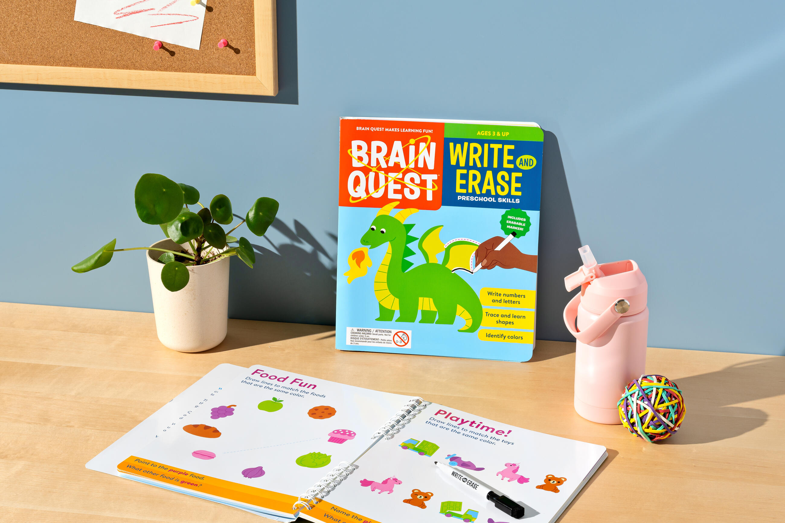 The ultimate write and erase workbook, with tons of curriculum-based activities and exercises focusing on letters, numbers, colors, and shapes. Includes a removable double sided white board and dry erase marker (attached in spiral binding).