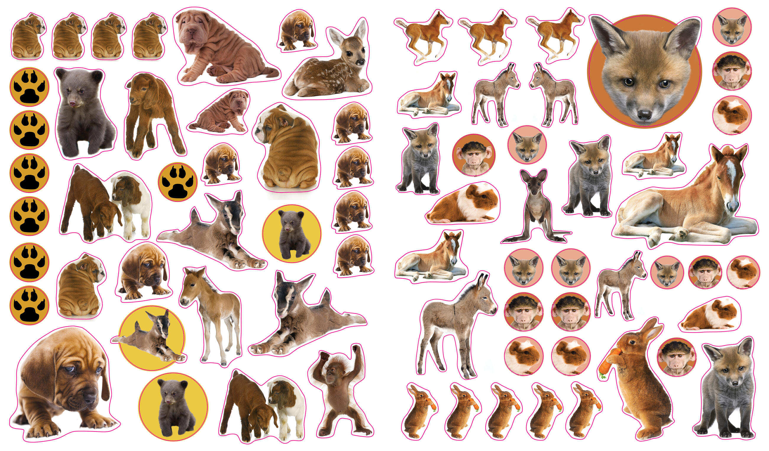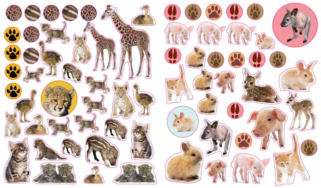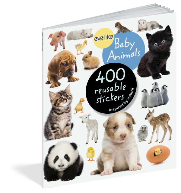Full-color photographic stickers feature a variety of adorable baby animals, from roly-poly pandas and fluffy bunnies to pink piglets, fuzzy owlets, cuddly puppies, and more! Whether on windows, notebooks, lunch boxes, or scrapbooks, these peel-and-place stickers are perfect for creating your own work of art anytime, anywhere, and are designed to be stuck on, peeled off, and stuck on again without tearing or losing their “stick.” The books’ inside covers are glossy illustrated backgrounds on which kids can create lively and original sticker scenes―and then change them whenever they like.