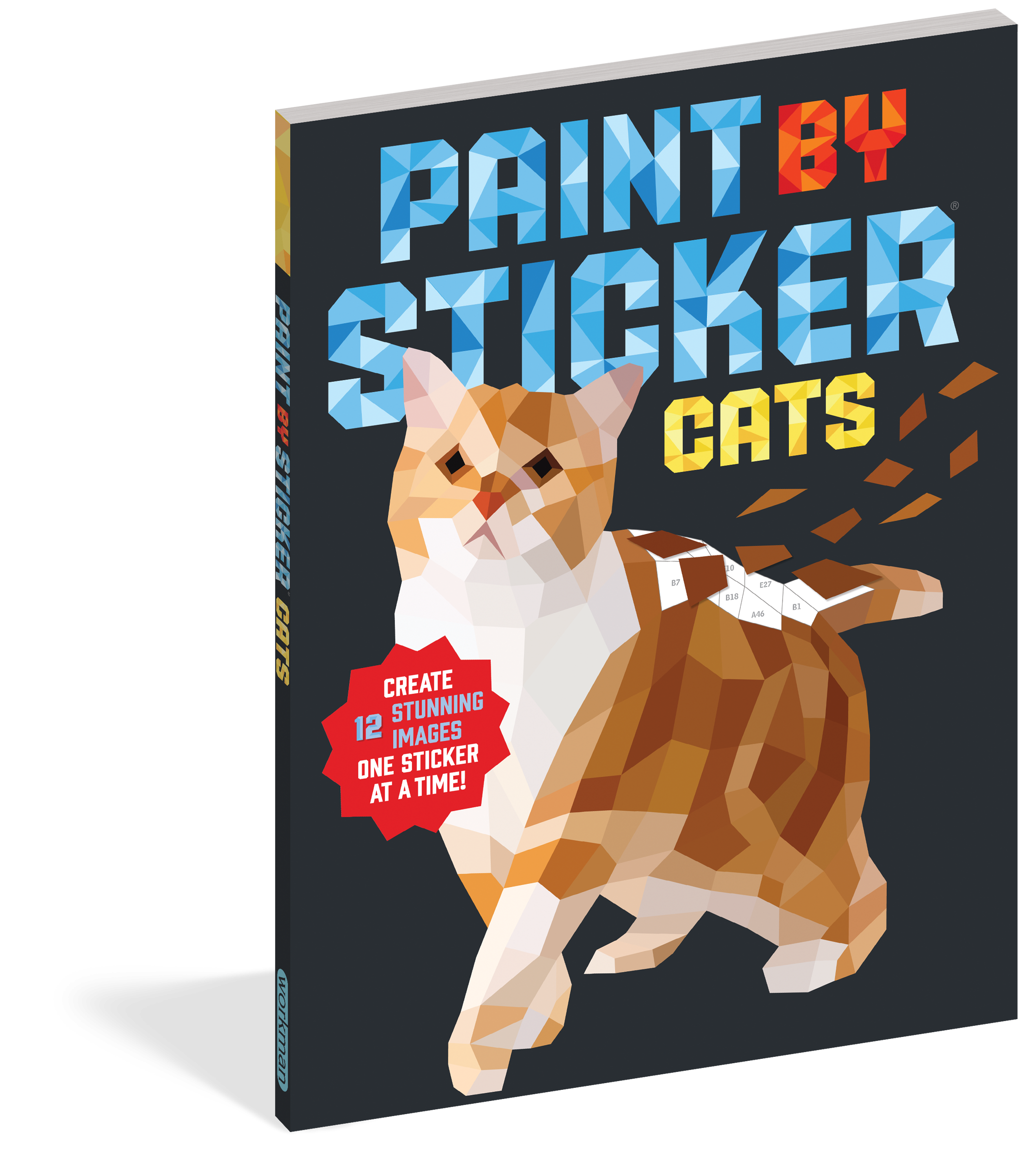 The Paint by Sticker series is now purrfect for cat lovers! Create gorgeous illustrations of felines in low-poly (geometric polygon shapes) style, one sticker at a time. There’s a playful ginger tabby hanging from her paws and an elegant, blue-eyed Siamese angling for a head scratch. Images are divided into dozens of spaces, each with a number that corresponds to a particular sticker. Find the sticker, peel it, and place it in the right space. Add the next, and the next, and relish the joy of watching a “painting” emerge!