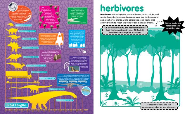 A fun way to learn about dinosaurs with stickers, activity pages, and lots of facts! Featuring stickers of spiky stegosaurs, four-winged microraptors, deadly tyrannosaurs, underwater plesiosaurs, and the massive diplodocus, which was longer than 3 school buses! Create your own wildlife scenes as you learn about some of the most fascinating dinosaurs that ever walked the earth.