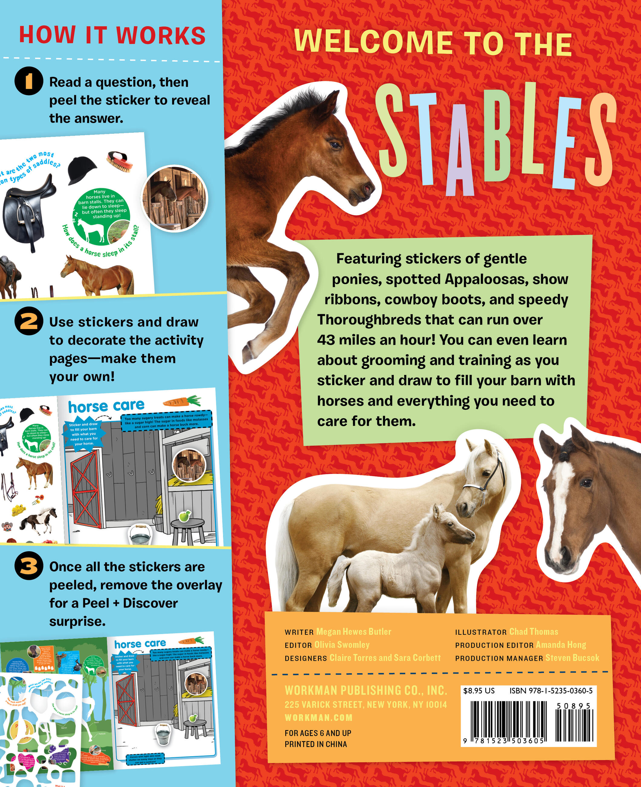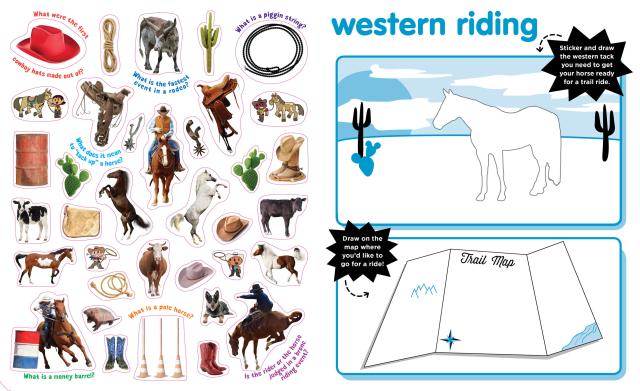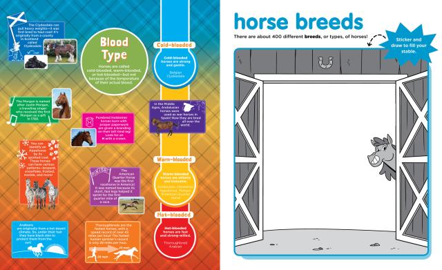 A fun way to learn about horses with stickers, activity pages, and lots of facts! Featuring stickers of gentle ponies, spotted Appaloosas, show ribbons, cowboy boots, and speedy Thoroughbreds that can run over 43 miles an hour! You can even learn about grooming and training as you sticker and draw to fill your barn with horses and everything you need to care for them.